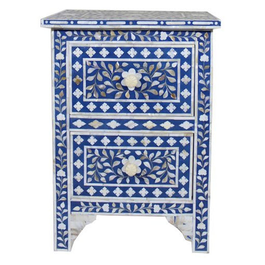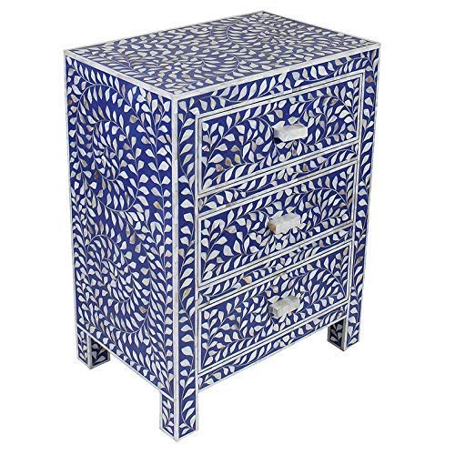 Mother of Pearl Inlay Floral Design With 3 Drawers Bedside Table Blue, Mother of Pearl Inlay Floral Design Nightstand Table Blue, Mother of Pearl Inlay Storage, Bedroom Furniture
