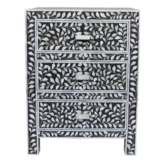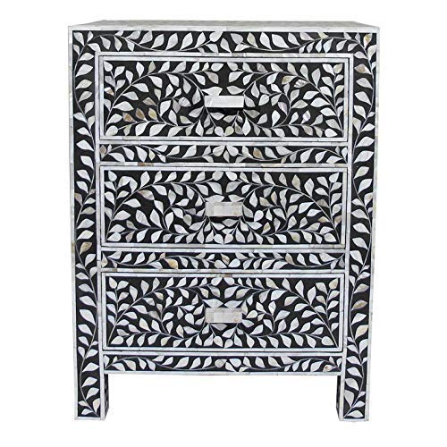 Mother of Pearl Inlay Floral Design With 3 Drawers Bedside Table Black, Mother of Pearl Inlay Floral Design Nightstand Table Blue, Mother of Pearl Inlay Storage, Bedroom Furniture