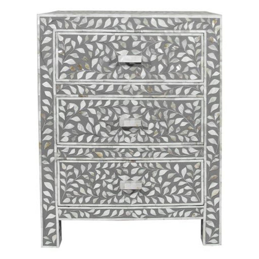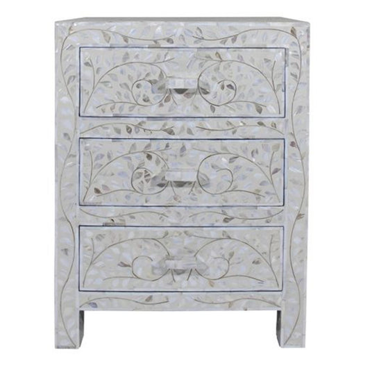 Mother of Pearl Inlay Floral Design With 3 Drawers Bedside Table , Mother of Pearl Inlay Floral Design Nightstand Table , Mother of Pearl Inlay Storage, Bedroom Furniture