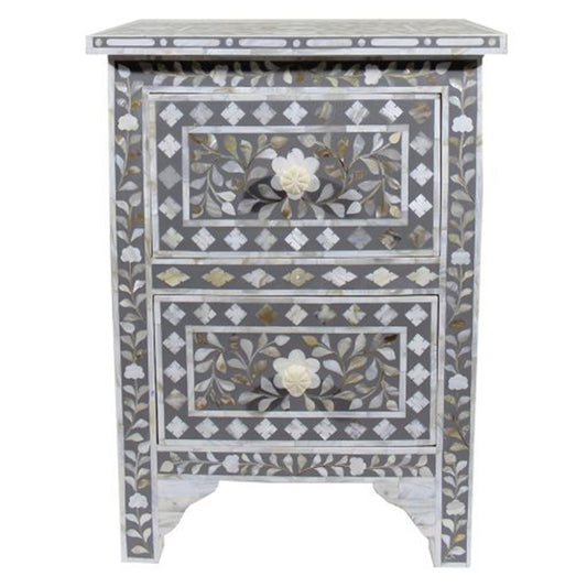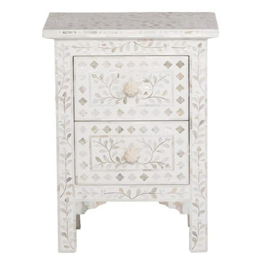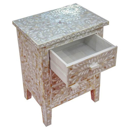 Mother of Pearl Inlay Floral Design With 2 Drawers Bedside Table , Mother of Pearl Inlay Floral Design Nightstand Table , Mother of Pearl Inlay Storage, Bedroom Furniture