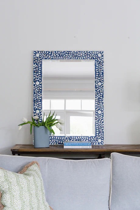 Mother of Pearl Inlay Floral Pattern Mirror Frame Mother of Pearl Mirror Mother of Pearl Frame Bone Inlay Mirror Bone Inlay Frame MOP Frames.