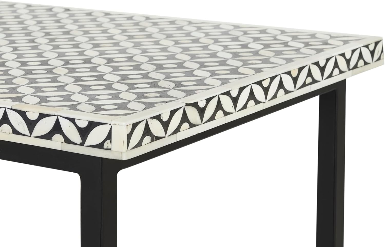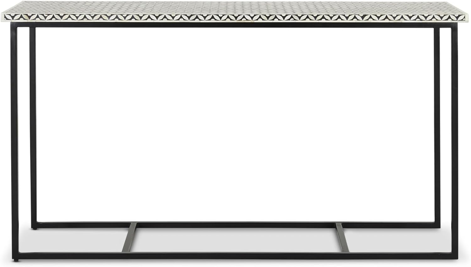 Bone Inlay Console Table Handcrafted Solid Wood Entryway Table with Intricate Floral Design for Hallway, Living Room, or Bedroom Décor