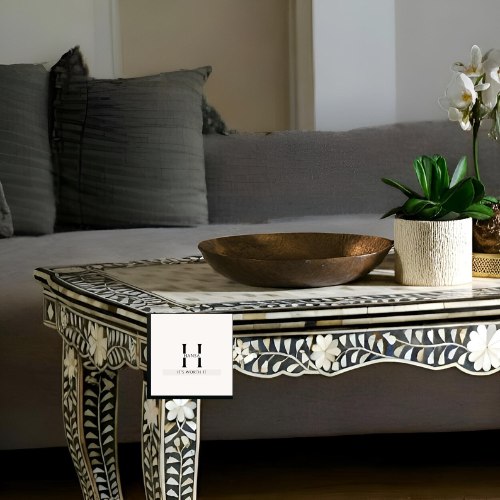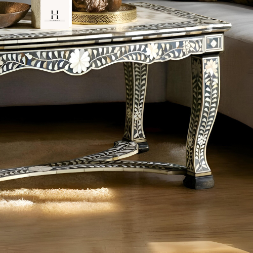 Floral Gray and White coffee table | Floral Pattern Coffee table -hansa handicraft