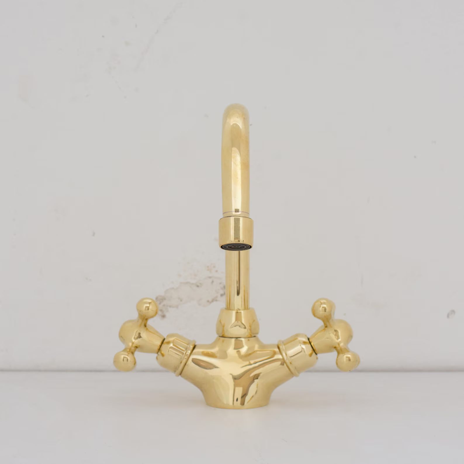 Unlacquered Brass Mixer Faucet | Single Hole Lever Handle Tap | Compact Short Bathroom Faucet – HANSA HANDICRAFT